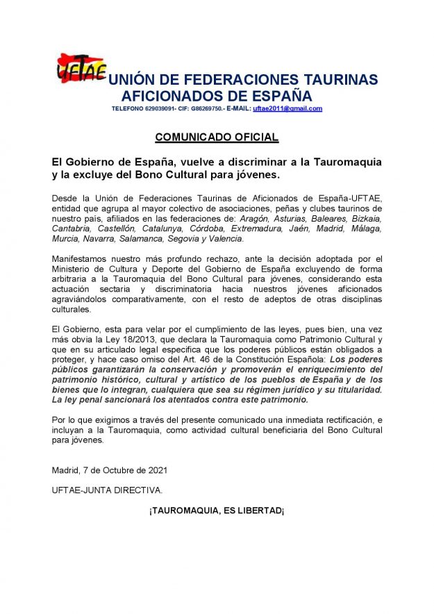 COMUNICADO OFICIAL UFTAE – Para + info haz clic👆 🇪🇸