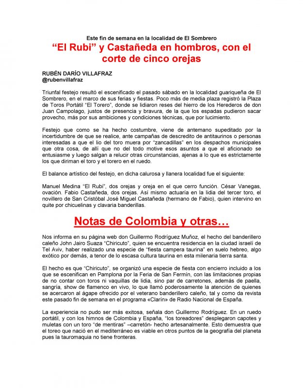 Fuente: Los toros dan y quitan Rehiletero de toros nacido en Madrid el 21 de septiembre de 1825 y que fue cogido el 4 de agosto de 1867 por un toro de nombre “Cuartelero o Carcelero” y que falleció a resultas de sus heridas el 23 de agosto de 1867 a los 42 años de…
