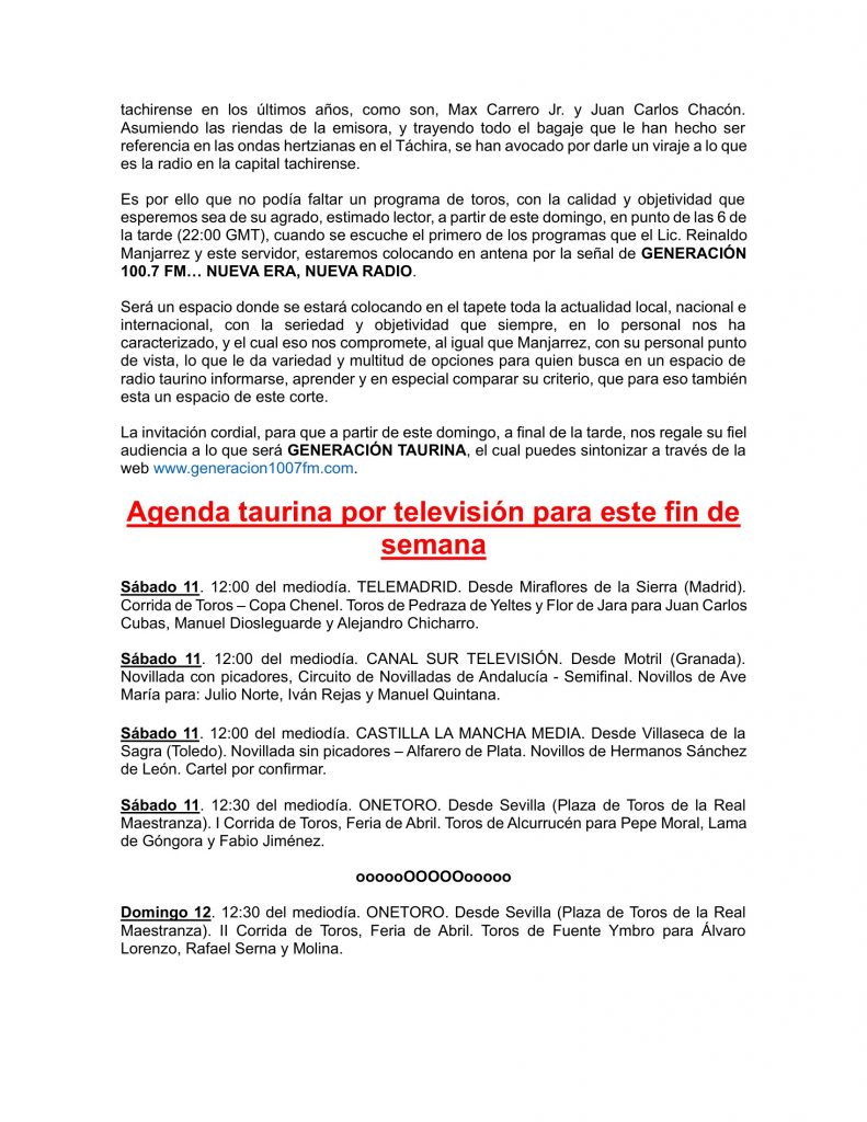 Por Carlos Alexis Rivera – CNP 10746 La empresa Forja Taurina ha hecho oficiales los detalles de la corrida de toros que se celebrará el próximo domingo 3 de mayo en la plaza «La Cruz» de Tezontepec, Hidalgo. El festejo, presenta una combinación internacional donde destaca la actuación del matador de toros venezolano Manolo…