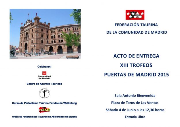 Acto de entrega de los XIII Trofeos Puertas de Madrid 2016, HemerotecaPor Claudia Starchevich3 junio, 2016 Informa Federación Taurina de Madrid