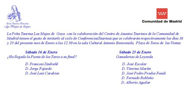 Ciclo de Conferencias Peña Taurina LAS MAJAS DE GOYA en Las Ventas 2016, HemerotecaPor Claudia Starchevich15 enero, 2016 Informa Redacción Sabios del Toreo