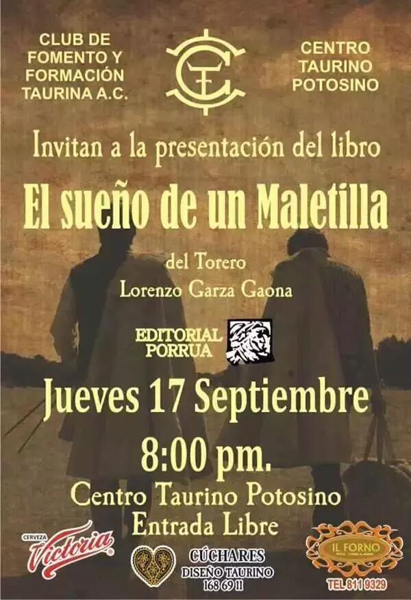 Presentación del libro `El sueño de un maletilla´ 2015, HemerotecaPor Claudia Starchevich16 septiembre, 2015 Informa Centro Taurino Potosino