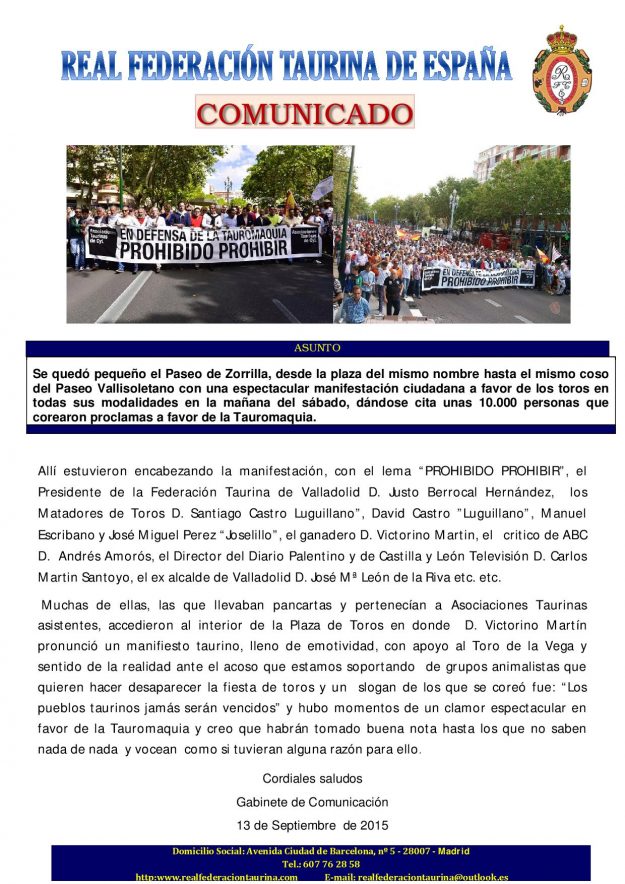 !Valladolid fue un clamor! 2015, HemerotecaPor Claudia Starchevich15 septiembre, 2015 Informa Real Federación Taurina de España