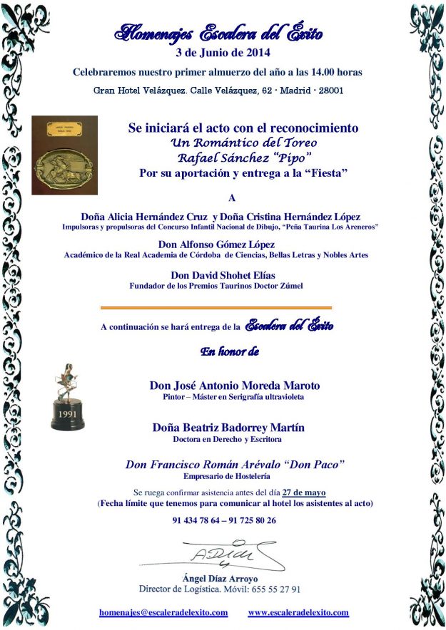 Arévalo Don Paco recibirá la Escalera del Éxito