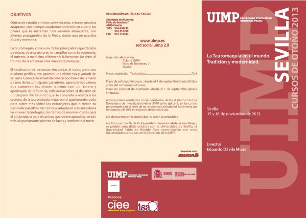 La Tauromaquia en el mundo. Tradición y modernidad 2013, HemerotecaPor Claudia Starchevich12 noviembre, 2013 Informa Universidad Internacional Menéndez Pelayo