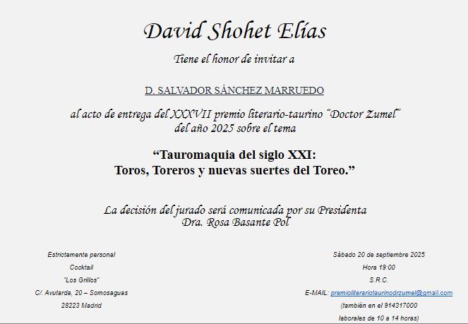 XXXVII EDICION PREMIO LITERARIO TAURINO Dr. ZUMEL – Para + info haz clic👆 🇪🇸