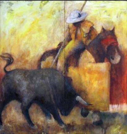 Fuente: Los toros dan y quitan Solo para efectos ilustrativos Escena de la Suerte de Varas (1998) Obra del pintor español Juan Ángel Sáiz Manrique Refiere el Dr. Juan José Zaldívar Ortega en sus obras, “Los Poderosos Toros de Ayer” y en “Víctimas del Toreo”, << que “Palomino” de don Antonio Hernández, cuando tranquilamente presenciaba…