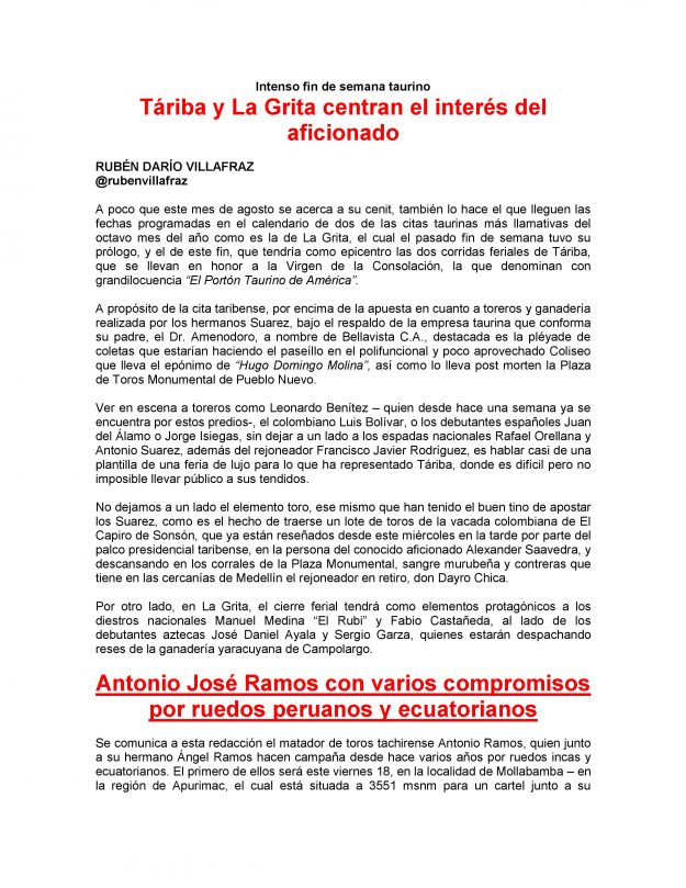 El torero de Granada, David Fandila «El Fandi», quién no pisa la plaza de toros «Hugo Domingo Molina» de Pueblo Nuevo en San Cristóbal, Venezuela desde el año 2020, ha sido anunciado por la empresa taurina Fiesta Brava para hacer el paseillo en la Feria Internacional de San Sebastián del próximo 2024. La figura española,…
