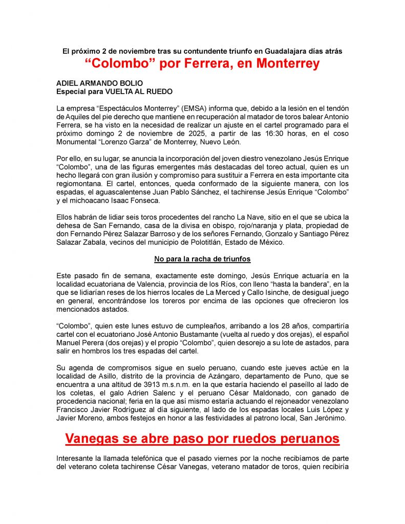 Nuevo compromiso taurino de Rando Miguel en España – Para + info haz clic👆 🇪🇸