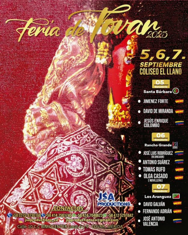 JSA Productions, la empresa bajo el auspicio del reconocido beisbolista Johan Santana, ha desvelado los carteles de la Feria Taurina de Tovar 2025, una cita que se perfila como un crisol de juventud, talento emergente y la siempre anhelada búsqueda de la emoción pura en el ruedo. La presentación, celebrada en la propia puerta grande…