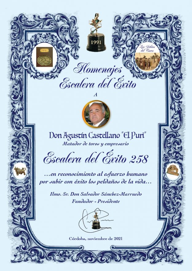 Don Agustín Castellano «El Puri» recibirá el Galardón Escalera del Éxito 258 el próximo martes 16 de noviembre en Córdoba – Para + info haz clic👆 🇪🇸 2021, HemerotecaPor Claudia Starchevich14 noviembre, 2021