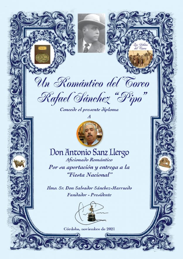 Don Antonio Sanz Llergo recibirá el Reconocimiento «Un Romántico del Toreo – Rafael Sánchez «Pipo» hoy 16 de noviembre en Córdoba – Para + info haz clic👆 🇪🇸 2021, HemerotecaPor Claudia Starchevich16 noviembre, 2021