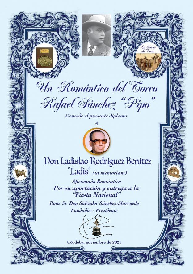 Don Ladislao Rodríguez Benítez «Ladis» recibirá el Reconocimiento «Un Romántico del Toreo – Rafael Sánchez «Pipo» hoy 16 de noviembre en Córdoba – Para + info haz clic👆 🇪🇸 2021, HemerotecaPor Claudia Starchevich16 noviembre, 2021
