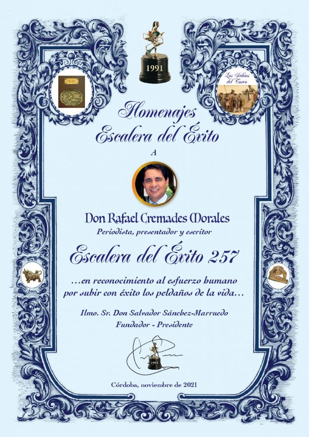 Don Rafael Cremades Morales recibirá el Galardón Escalera del Éxito 257 el próximo martes 16 de noviembre en Córdoba – Para + info haz clic👆 🇪🇸 2021, HemerotecaPor Claudia Starchevich14 noviembre, 2021