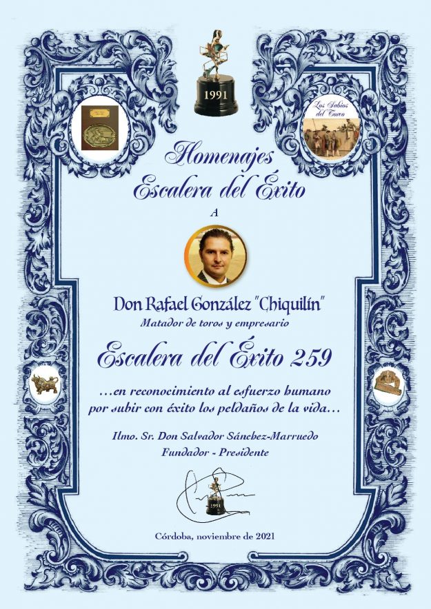 Don Rafael González «Chiquilín» recibirá el Galardón Escalera del Éxito 259 el próximo martes 16 de noviembre en Córdoba – Para + info haz clic👆 🇪🇸 2021, HemerotecaPor Claudia Starchevich15 noviembre, 2021