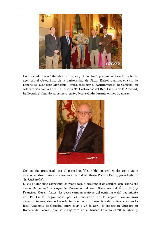 #LETRASTAURINAS culmina hoy martes con el coloquio «La Córdoba de Manolete y Cántico»