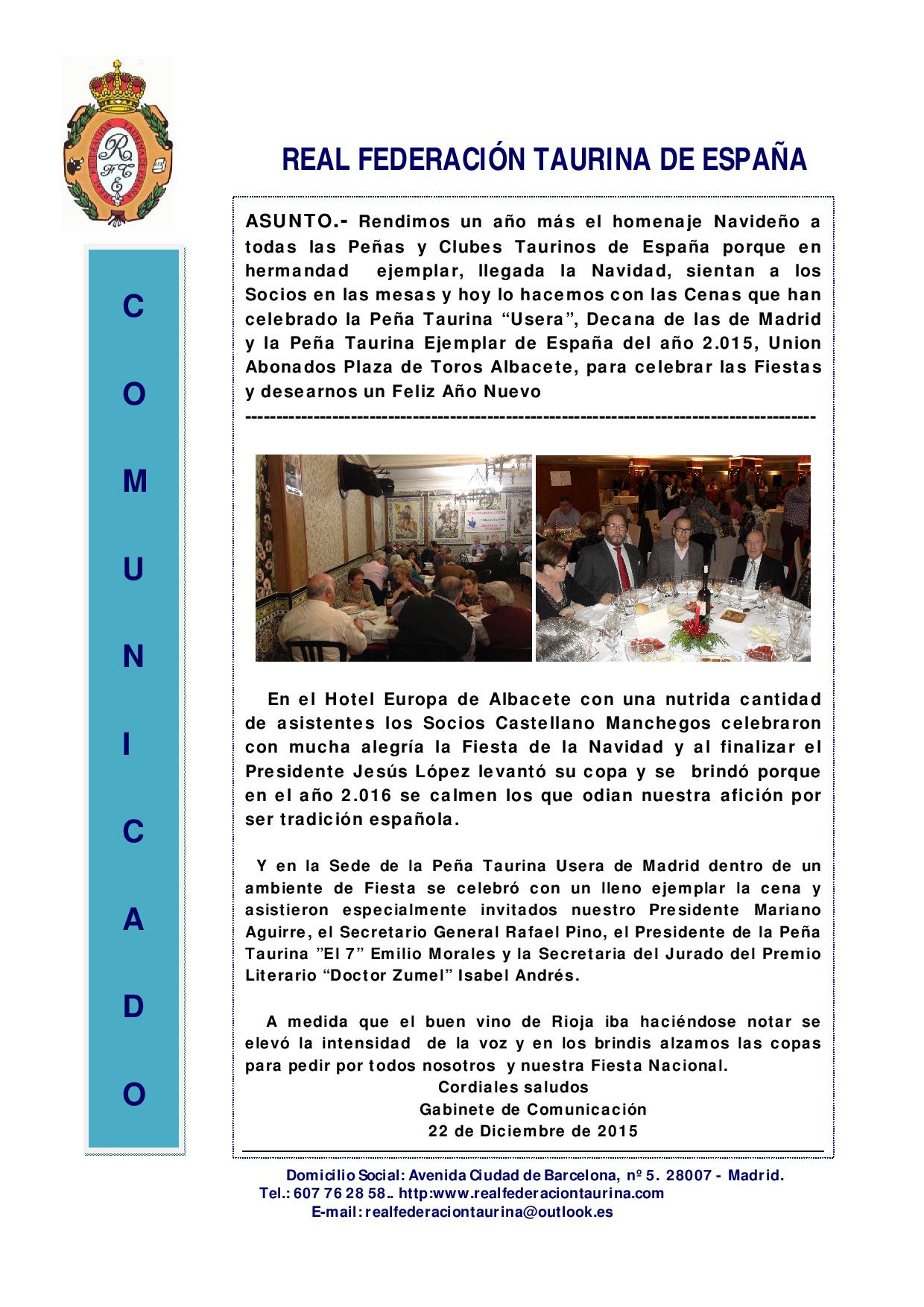 Celebraciones de las Fiestas Navideñas en las Peñas Taurinas españolas