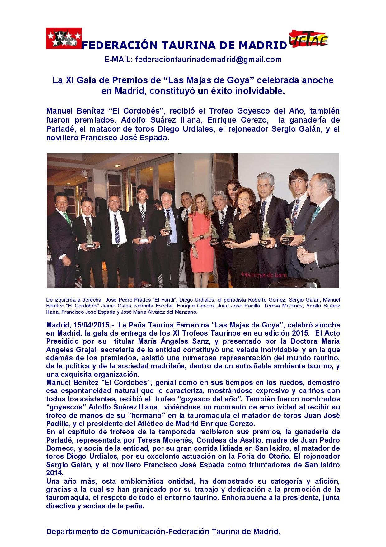 Celebrada la XI Gala de Premios de `Las Majas de Goya´