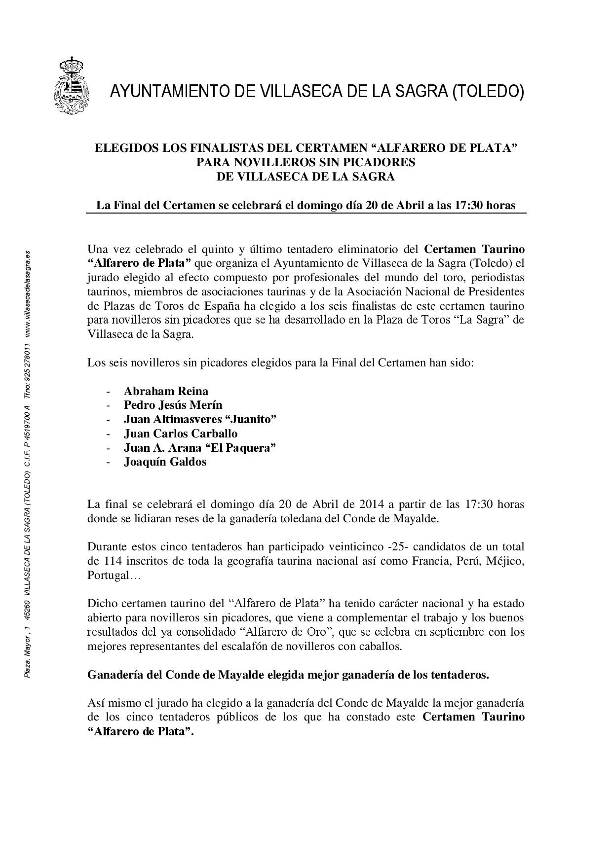 Certamen Taurino “Alfarero de Plata”