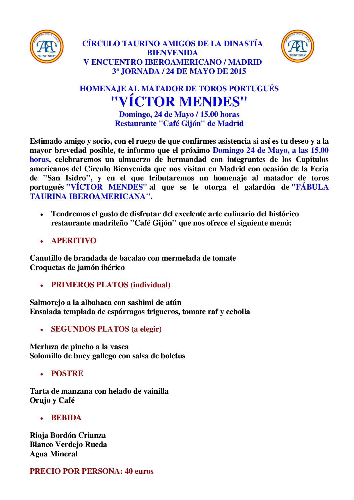 Circulo Bienvenida rendirá homenaje al Matador de Toros portugués Víctor Mendes