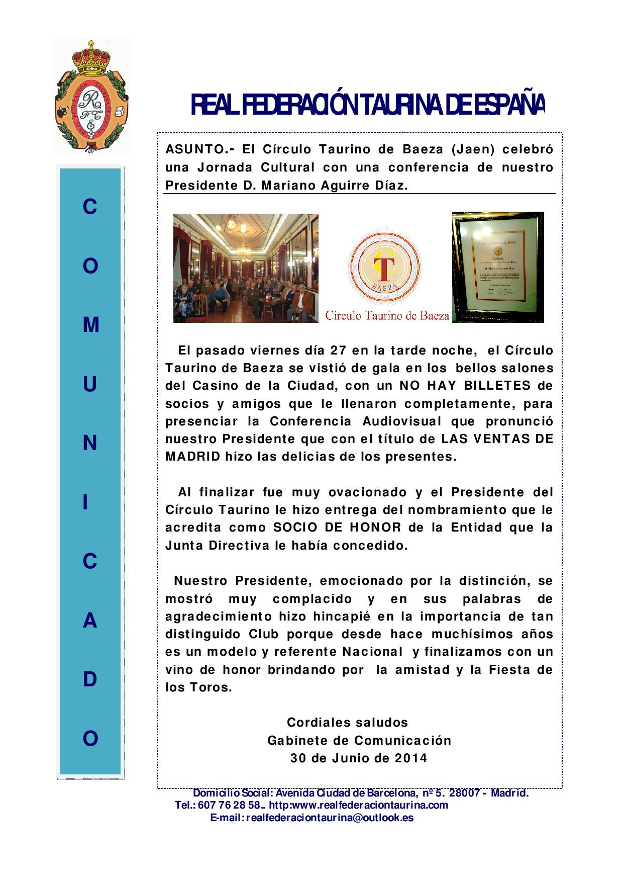 Círculo Taurino de Baeza (Jaén) celebró una Jornada Cultural con una conferencia de D. Mariano Aguirre Díaz. Escalera del Éxito 76