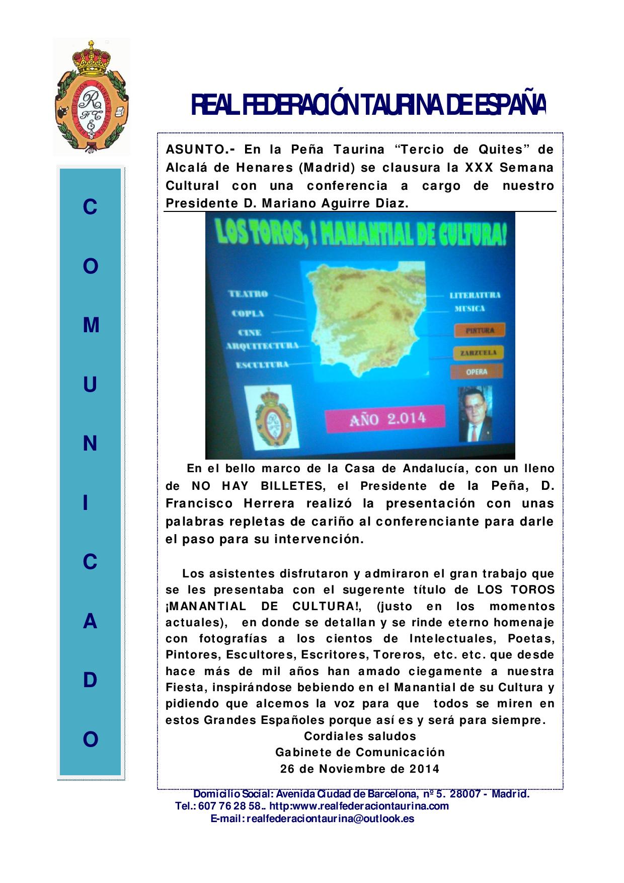 Clausura de la XXX Semana Cultural Peña Taurina `Tercio de Quites´ de Alcalá de Henares