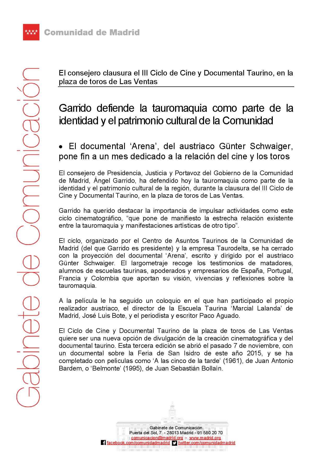 Clausura III Ciclo Cine y Documental Taurino en Las Ventas