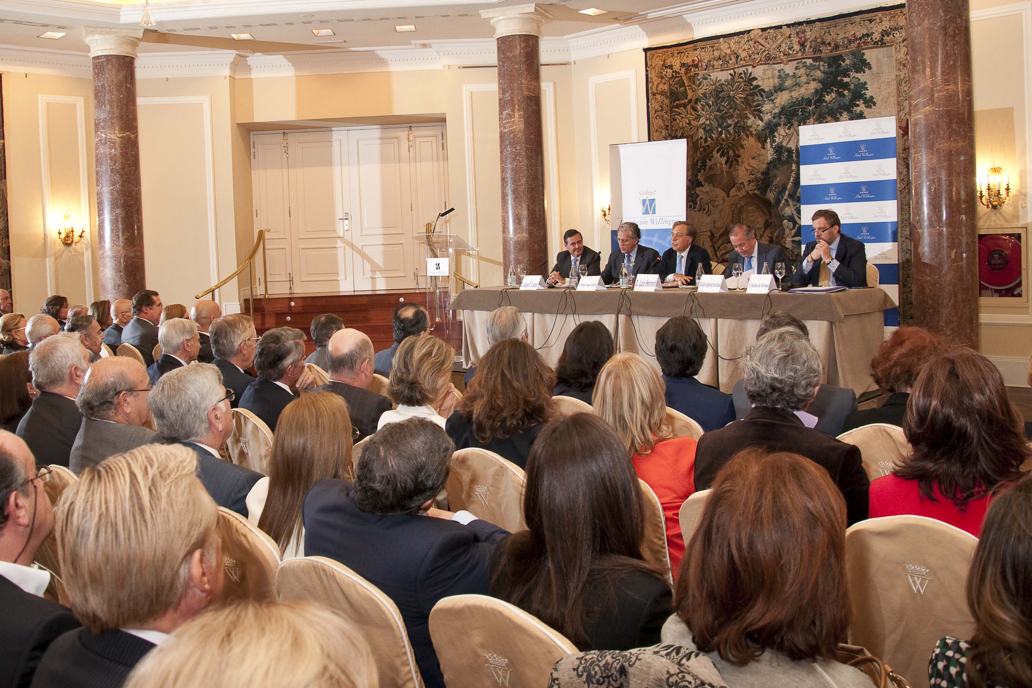 El acto congregó a un numeroso grupo de invitados que siguieron con extraordinaria atención las interesantes intervenciones de los ponentes: D. Diego López Garrido, Secretario de Estado para la Unión Europea de España, D. Gustavo de Arístegui, Diplomático y Diputado portavoz de exteriores del Partido Popular en el Congreso, D. Juan Iranzo (Escalera del Éxito 166), Decano Presidente del Colegio de Economistas de Madrid y D. Julio Iglesias de Ussel, Catedrático de Sociología de la UCM, Académico de Número de la R.A. de Ciencias Morales y Política.