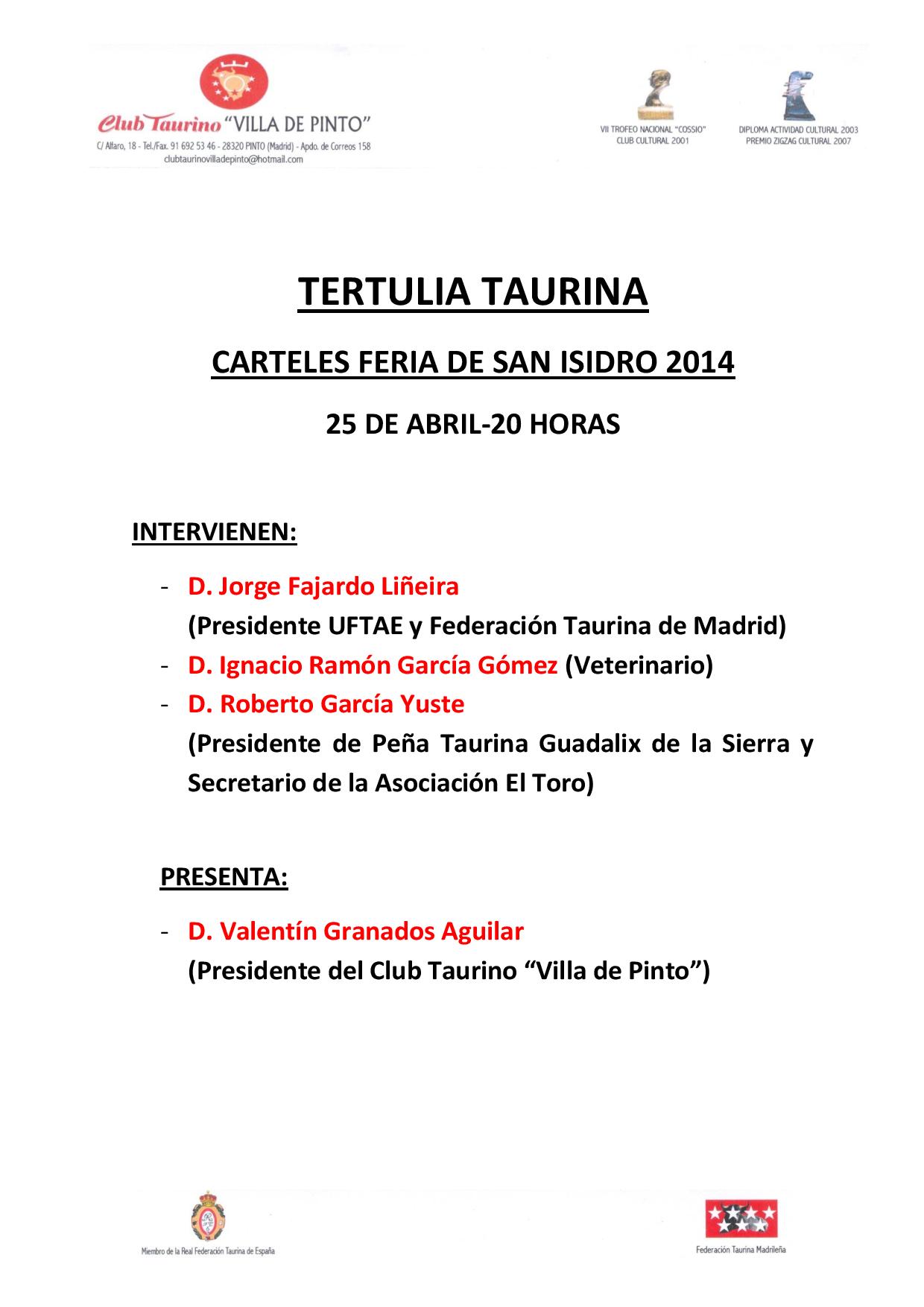 Coloquio Valoración Carteles Feria de San Isidro 2014