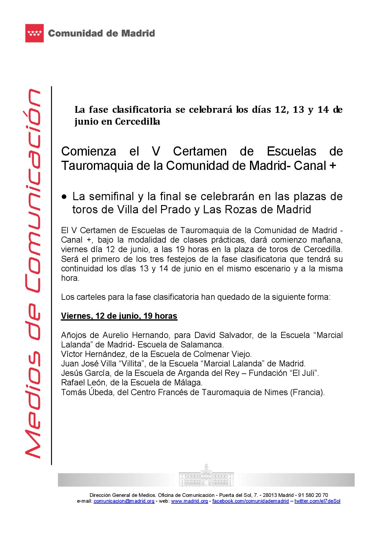 Comienza el V Certamen de Escuelas de Tauromaquia de la Comunidad de Madrid- Canal +
