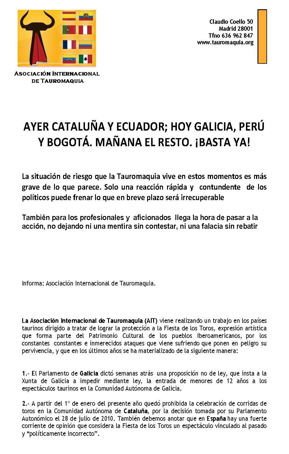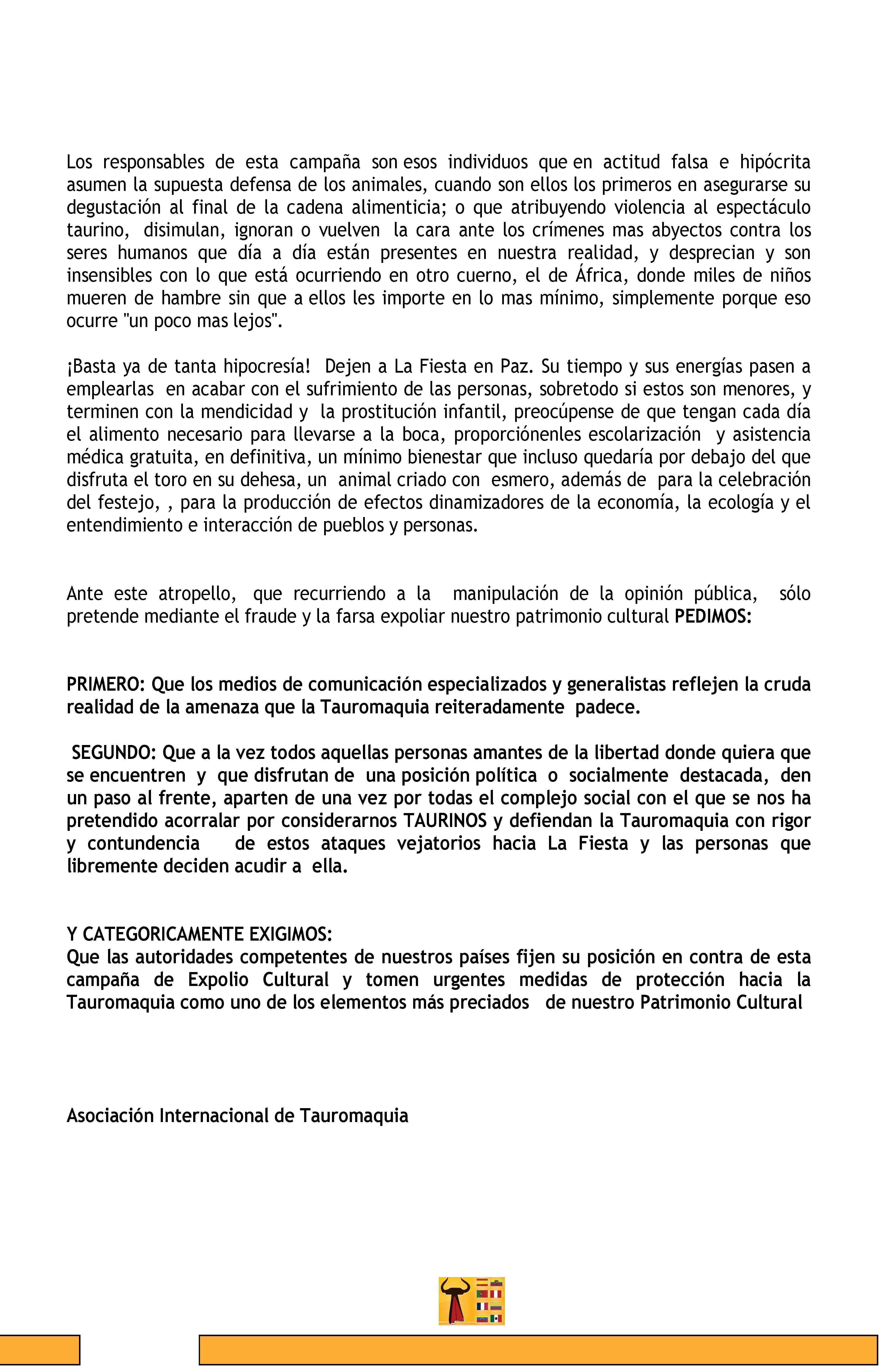 Comunicado de la AIT sobre las agresiones internacionales hacia la Tauromaquia