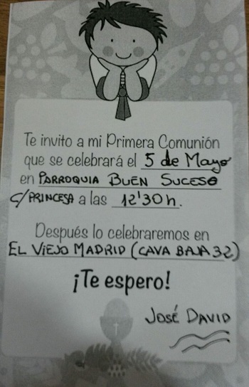 celebró la comunión de su hijo José David Sánchez Cortón, a la cual tuvimos el privilegio de asistir.