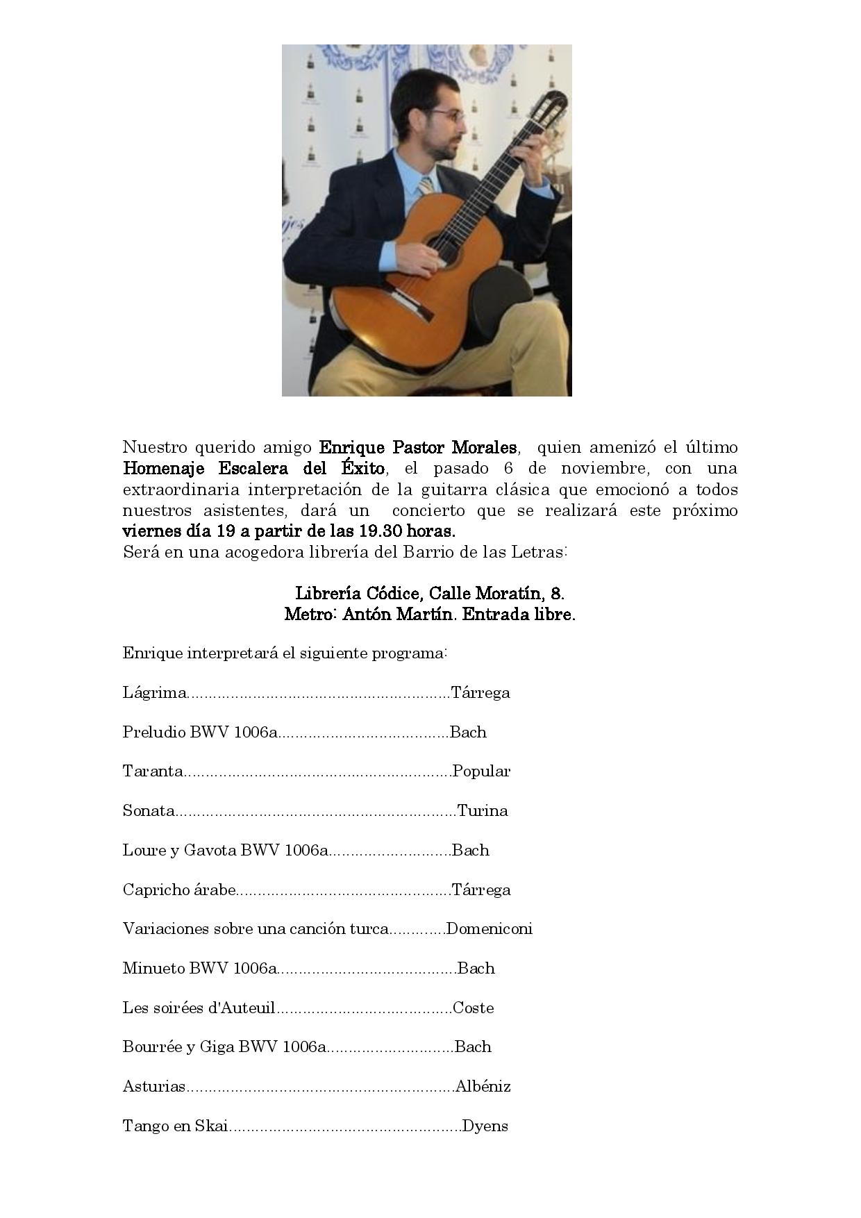 Concierto de guitara clásica de Enrique Pastor Morales