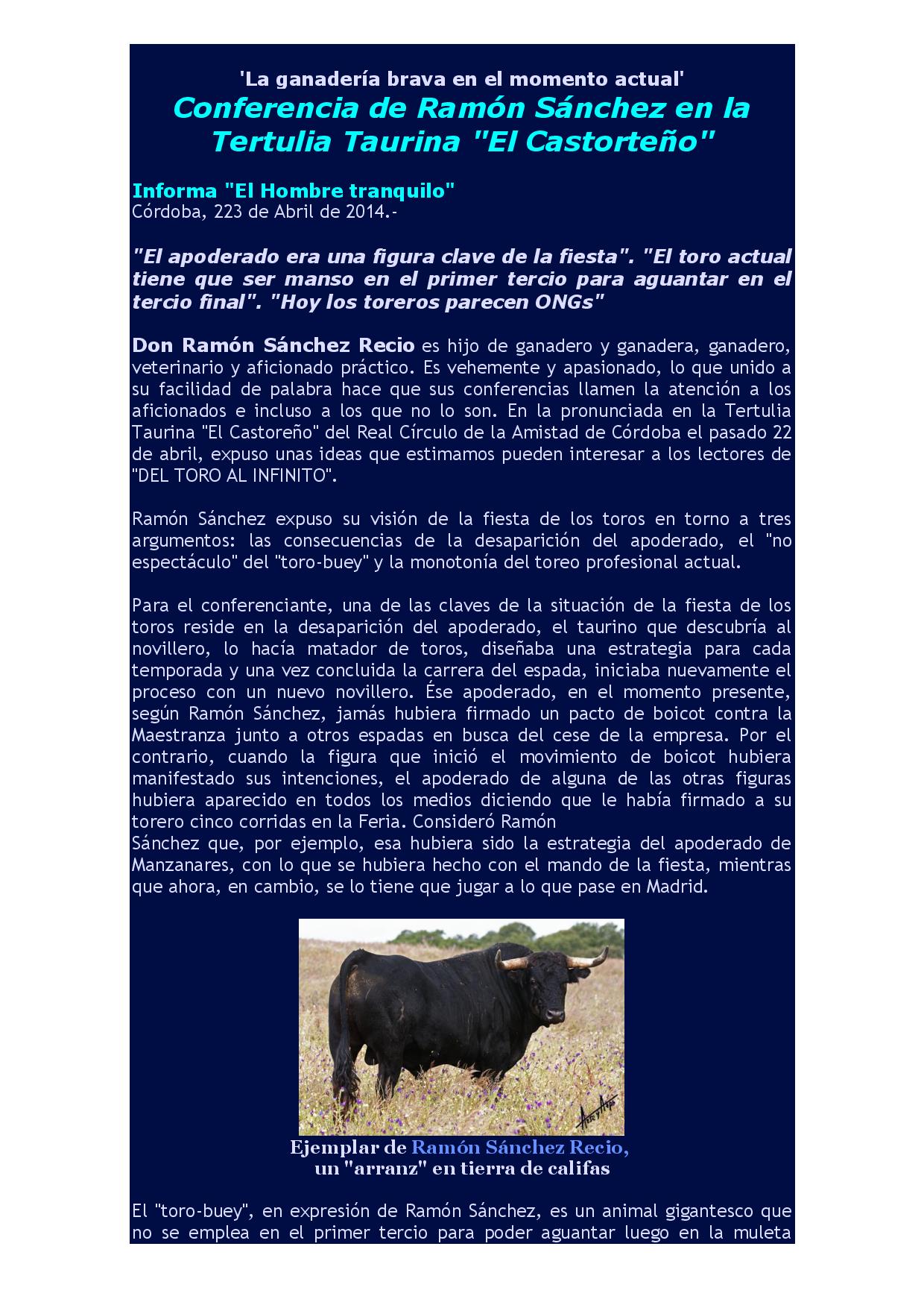 Conferencia de Ramón Sánchez en la Tertulia Taurina El Castoreño
