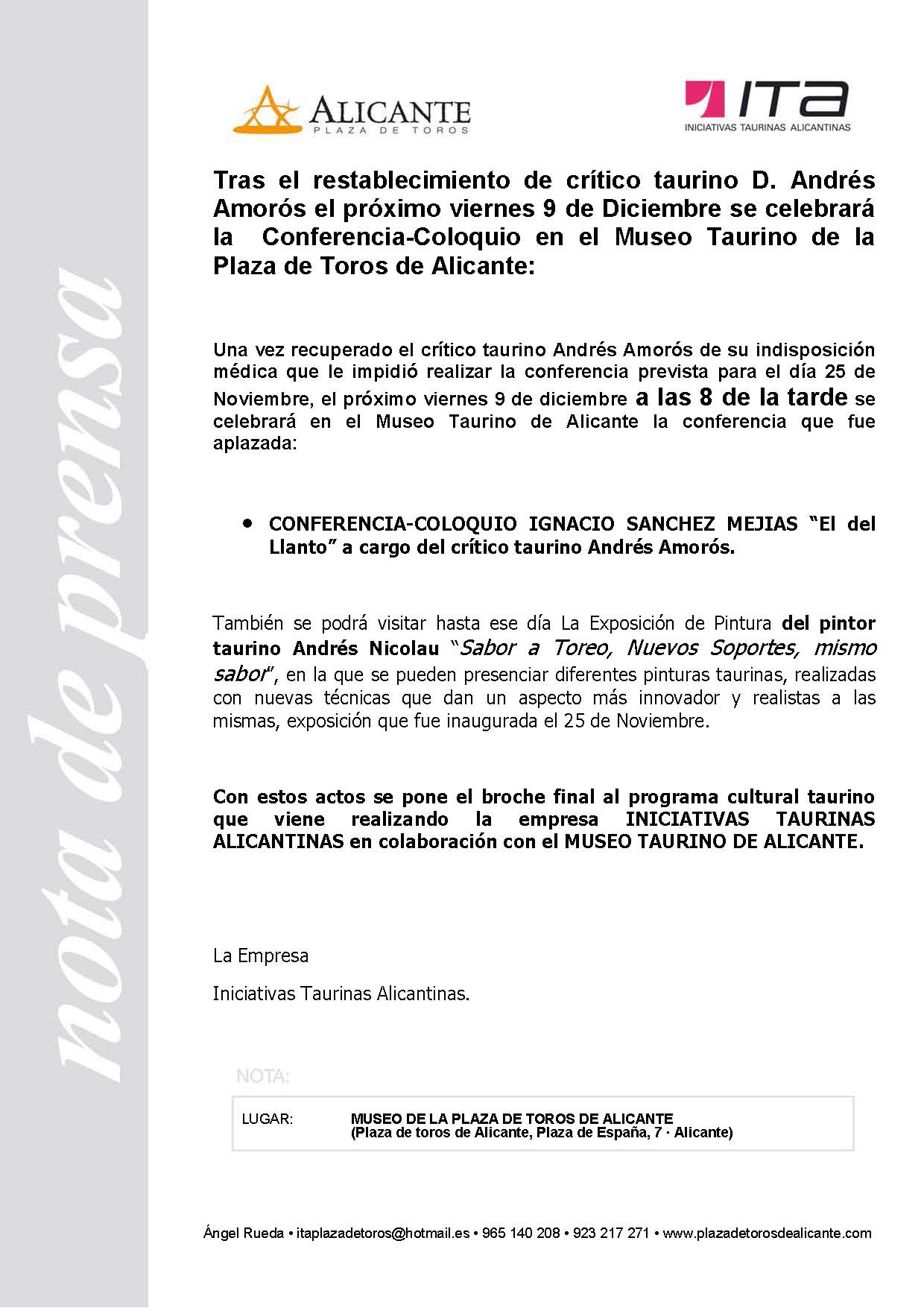 Conferencia del Critico Taurino Andres Amoros en Alicante