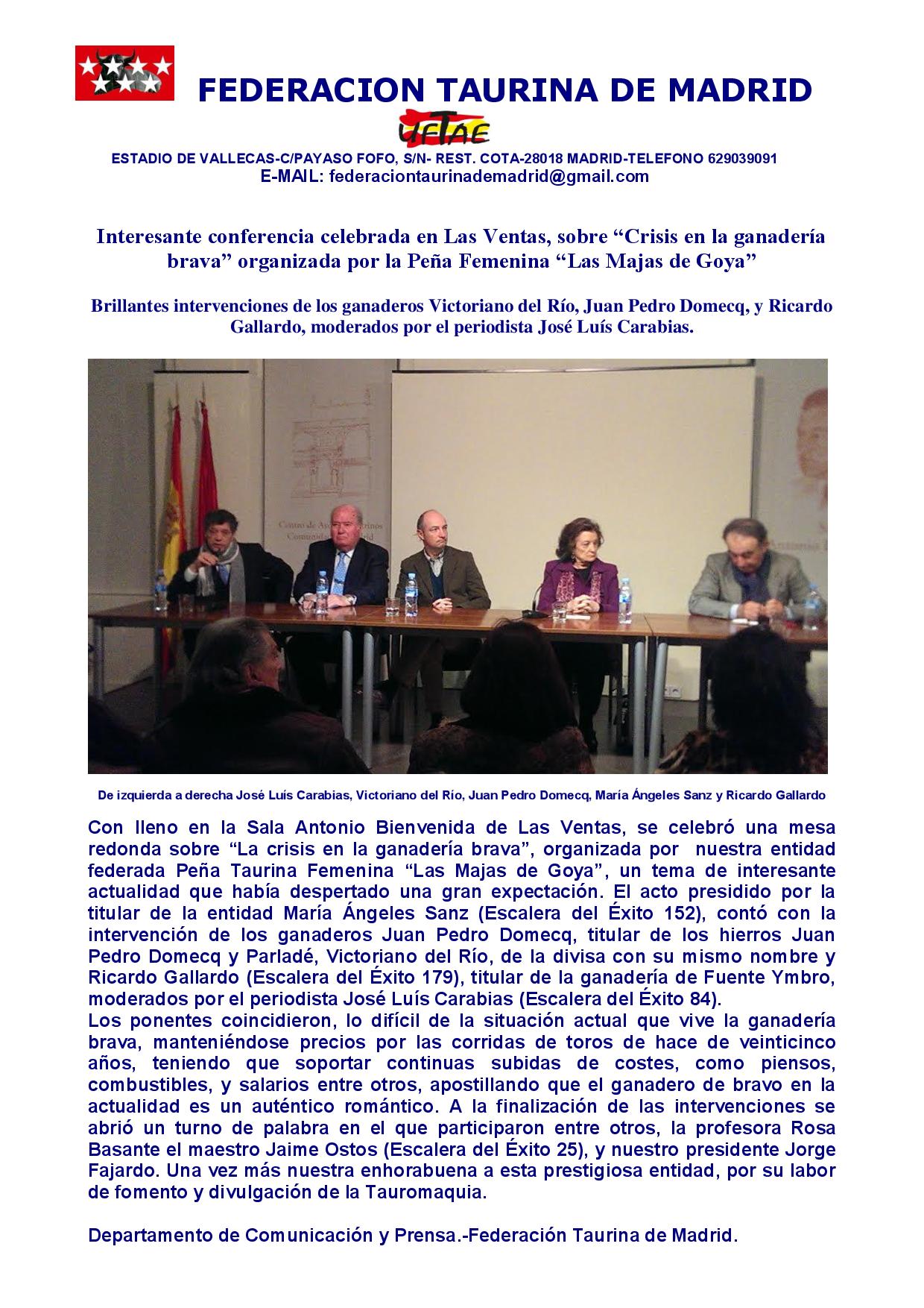 Conferencia en Las Ventas sobre `Crisis en la ganadería brava´ organizada por la Peña Femenina `Las Majas de Goya´