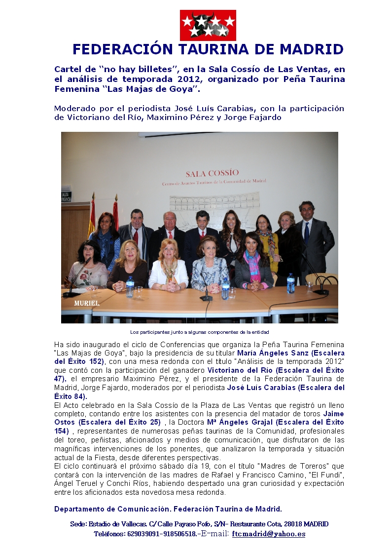 Conferencias Peña Taurina Femenina Las Majas de Goya