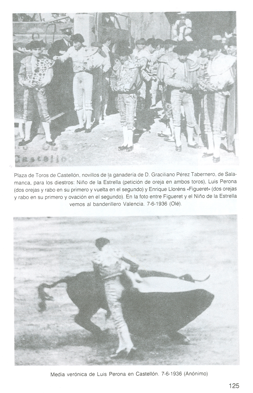 Respecto a las fotografías, en el libro “Cien años de historia del toreo de Castellón”, escrito por