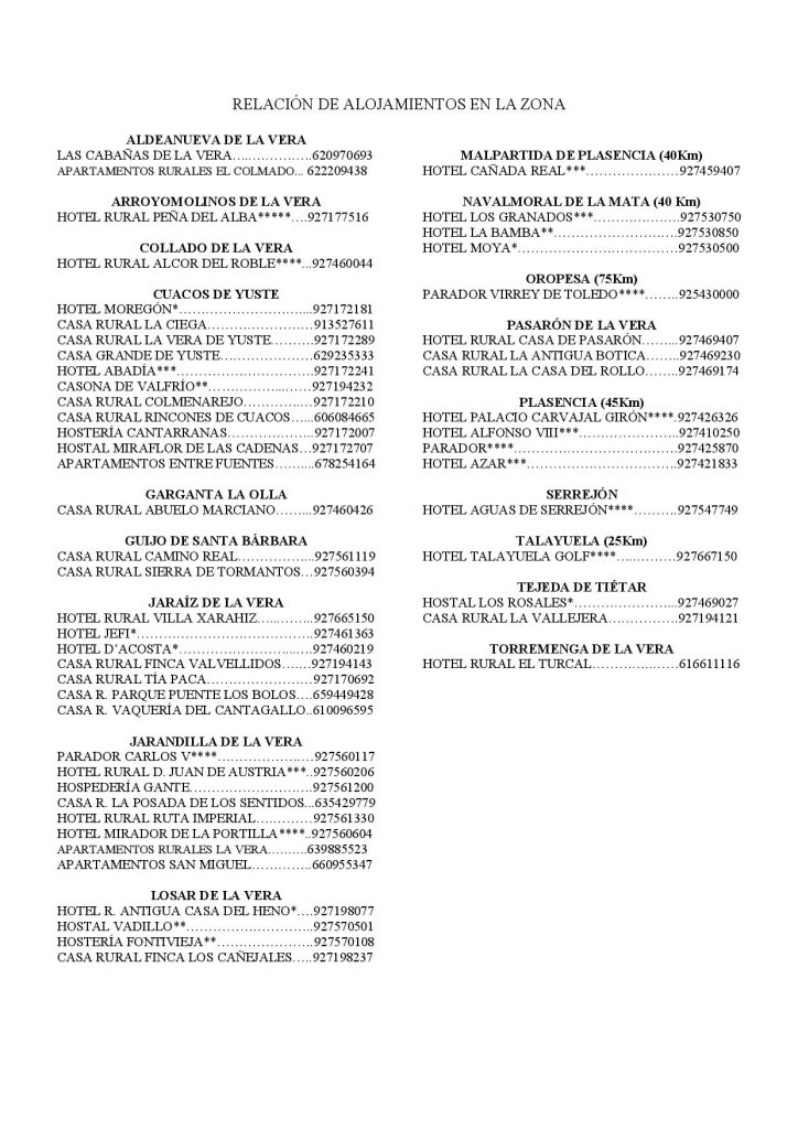 Adjunto se envía relación de hoteles de esta zona, para que puedan hacer directamente las reservas de alojamiento.