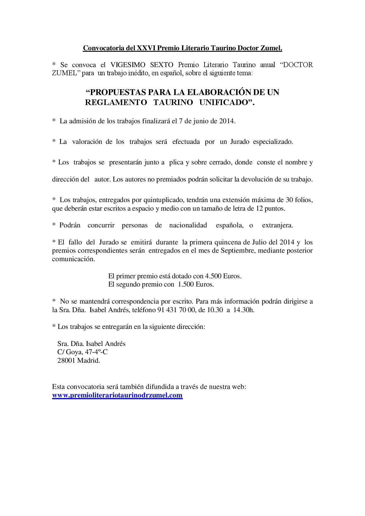 Convocatoria del XXVI Premio Literario Taurino Doctor Zumel