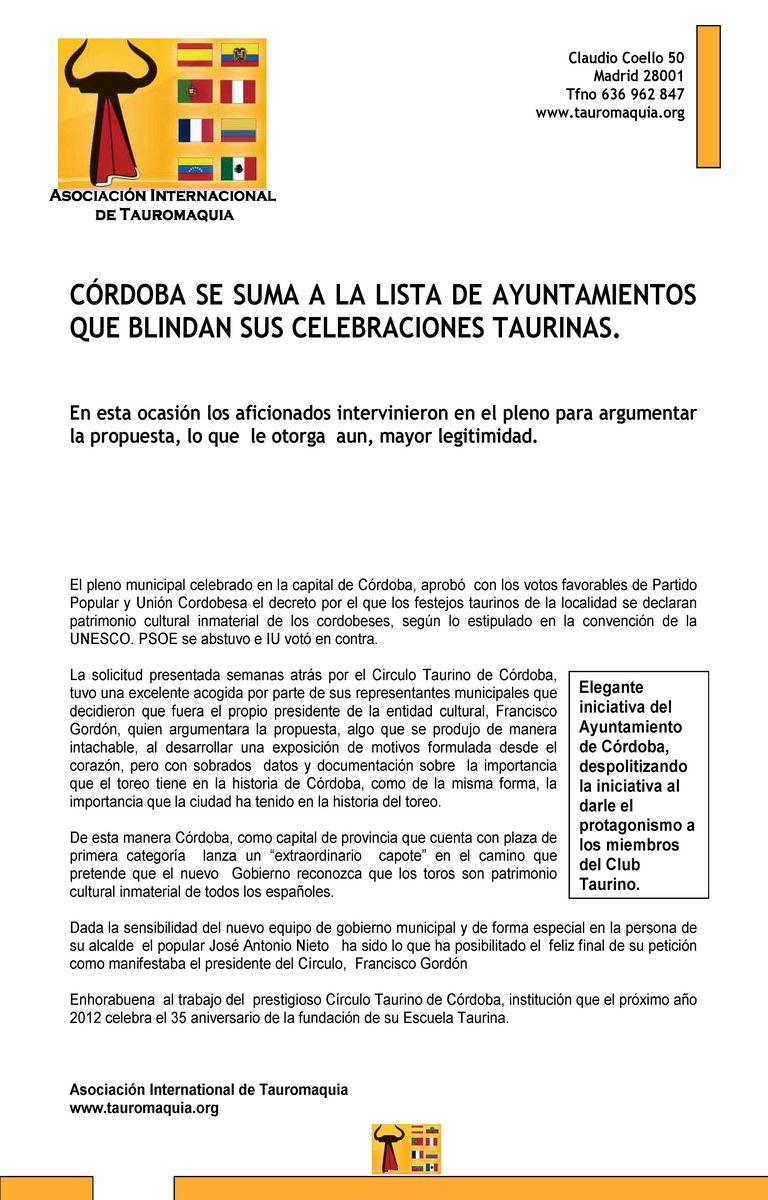 Córdoba se suma a los ayuntamientos que blindan sus celebraciones taurinas