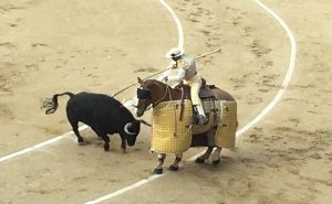 Pedro Iturralde es uno de los más afamados picadores del escalafón por méritos propios. Hoy no estuvo bien salvo en el último puyazo. Vean dónde y cómo cita en su primer encuentro. ¿También por la mala doma del caballo?