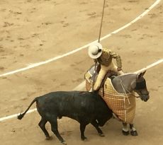 -Pedro Iturralde no ha estado acertado esta feria. En su primer puyazo de hoy picó solo traserillo pero sin dar el pecho al toro; falta de colocación. El 2º, como ven, fue muy trasero, y tangente a raya en jaco. Deben exigir los picadores que se les ponga el toro en suerte adecuadamente.