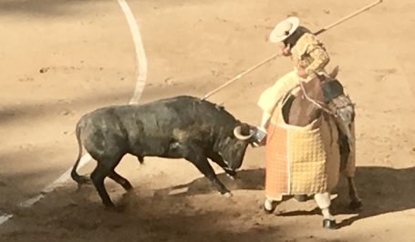 2º al público y luego al Rey, rarito, y aprovechó como sabe a su buen oponente, unas veces en embroques ceñidos, otras despegadillo. Pero la faena llega al público adepto al lorquino y es muy jaleada, a pesar de que varias veces estuvo atropelladito. Hay que ensalzar su entrega y el deseo de hacer las cosas con ortodoxia, pero ya hay que exigirle mayor cuidado en la técnica para no estar a merced de los toros y, lo que es peor, rectificando posición de continuo.