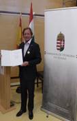 La entrega de la Condecoración del Estado de Hungría de manos de la Embajadora Sra. Enikö Györi tuvo lugar en la celebración de la Fiesta Nacional de Hungría en Madrid.