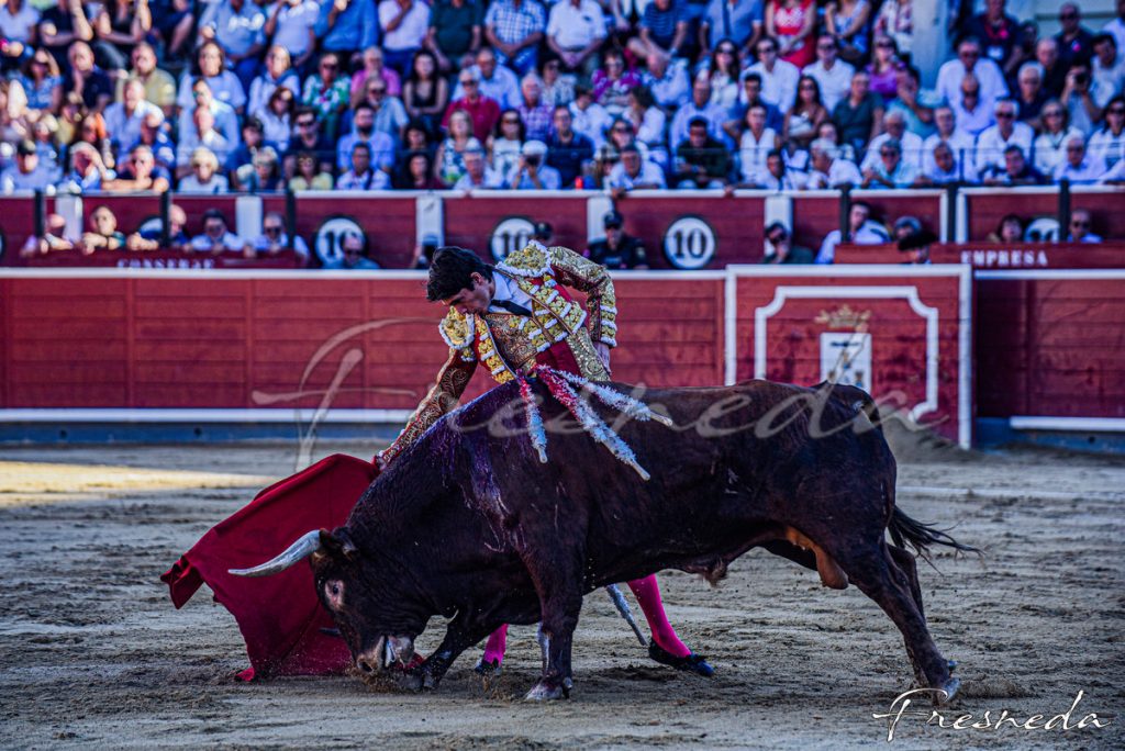 Y luego estuvo el que muerde, el que arrea y se come a sus contrincantes por donde le dejen, Borja Jiménez, estuvo en sus dos toros muy bien, no tuvo el mejor lote, pero cuajo dos buenas faenas en la primera cortó una Oreja, que hubiera tenido más petición de no ser por la bravura en la muerte del mismo que tardó en doblar… Y en su segunda faena fue de menos a más que se disolvió como una pastilla efervescente en agua por el remate con el acero…