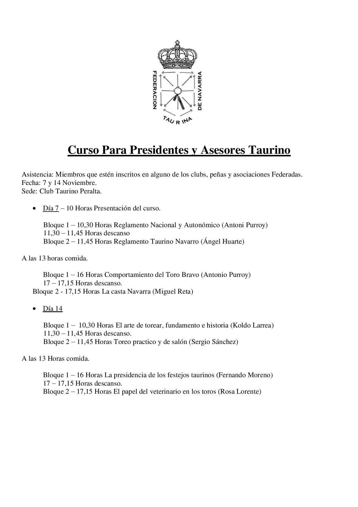 Curso para Presidentes y Asesores Taurino