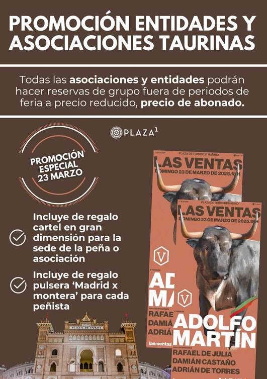 Os comunicamos la siguiente información de vuestro interés que nos facilita Plaza 1 para la Plaza de Toros de Las Ventas.