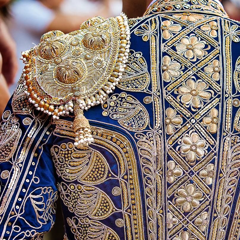 Los clarines llaman a cuadrillas y bendigo a todos los que me heredaron esta afición de gloria. Aparecen los toreros, verde botella corinto, y -por supuesto- purísima, los vestidos de los tres diestros son bordados en oro. Aplaudo con admiración a los héroes que firmaron contrato para matar media docena de merengues encastados.
