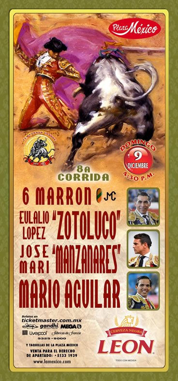 La pifia iba en crescendo. Sale el cuarto y es débilmente protestado. Zotoluco, que es un manojo de mañas, cobijado en tablas, le pega dos mantazos que acallan los silbidos del “irrespetable”. Acto seguido al tercio de banderillas, el diestro de Azcapotzalco liga una faena insulsa de medios pases, toreando a la distancia, dejando enganchar el trapo una y otra vez. A cambio de ello, el par de sirvientes que atienden el palco de la autoridad y que no saben más que obedecer al amo Herrerías, le regalan dos orejas. Manzanares, por su parte, ha comparecido displicente y apático. No viene de vena y a leguas se nota que no hará nada de nada. Por último, al fin te percatas de que lo de